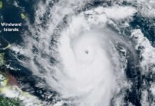 Beryl avanza por el mar Caribe como un poderoso huracán 5 tras haber tocado tierra el lunes por la mañana en la isla Carriacou, Granada, en...